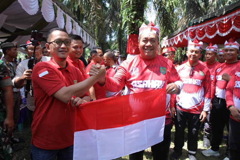 Kegiatan diawali dengan penyerahan Bendera Merah Putih secara simbolis kepada Kepala Desa se-Kecamatan Bandar Pulau oleh Bupati Asahan bersama Forkopimda dan tamu kehormatan.(LMC-02)
